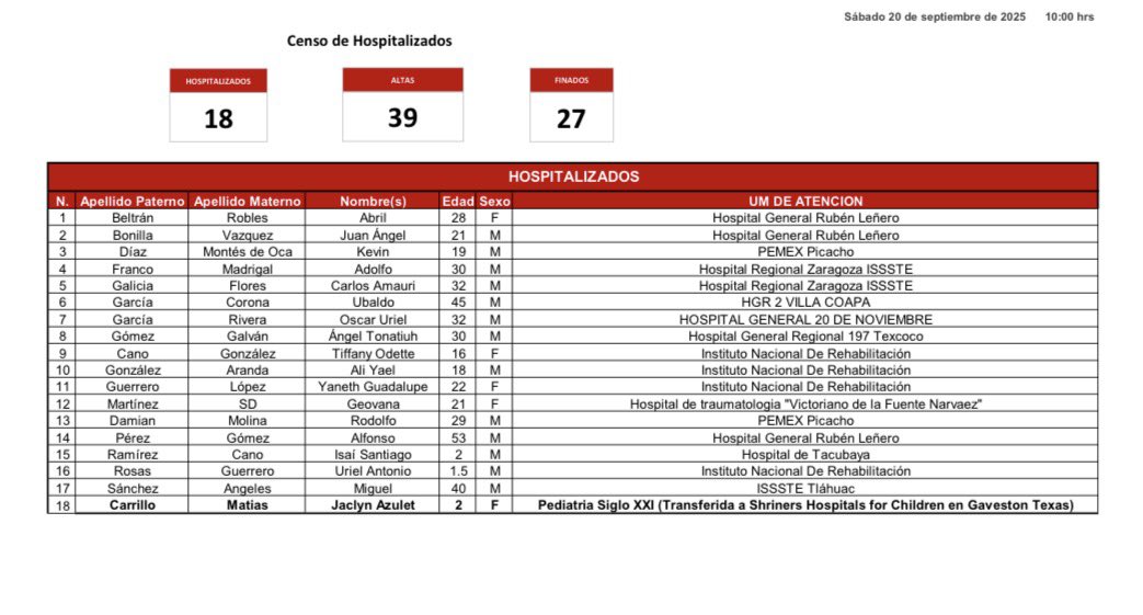 La tragedia ocurrida en el oriente de la Ciudad de México continúa dejando huella, a casi diez días del estallido de una pipa de gas en el Puente de la Concordia, en Iztapalapa, las autoridades capitalinas confirmaron que la cifra de víctimas mortales ascendió a 27, mientras que 18 personas permanecen hospitalizadas y otras 39 ya recibieron el alta médica.