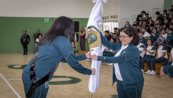 La ceremonia se llevó a cabo en la Unidad Deportiva “Lic. Adolfo López Mateos”, donde la rectora Martha Patricia Zarza Delgado entregó la bandera universitaria a la nadadora Verónica Vega Vidal, además de otorgar de manera simbólica kits deportivos a las y los atletas.