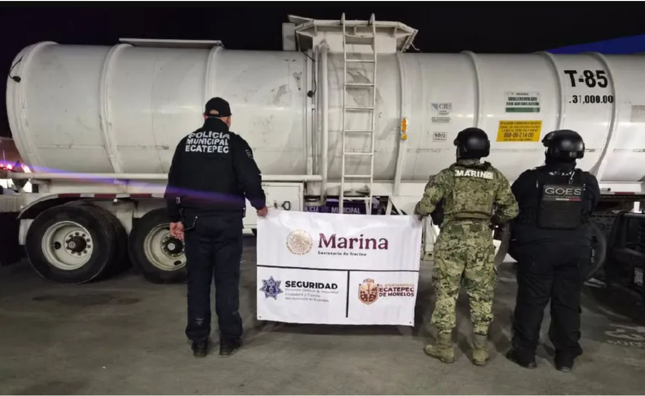 Elementos del Sector 15, con respaldo de personal de Fuerza de Tarea Marina, detuvieron en una gasolinera de Santa Cruz Venta de Carpio al conductor de una pipa con capacidad de 31 mil litros, que transportaba combustible presuntamente robado, quien fue presentado ante el Ministerio Público Federal por probable posesión ilícita de hidrocarburos.