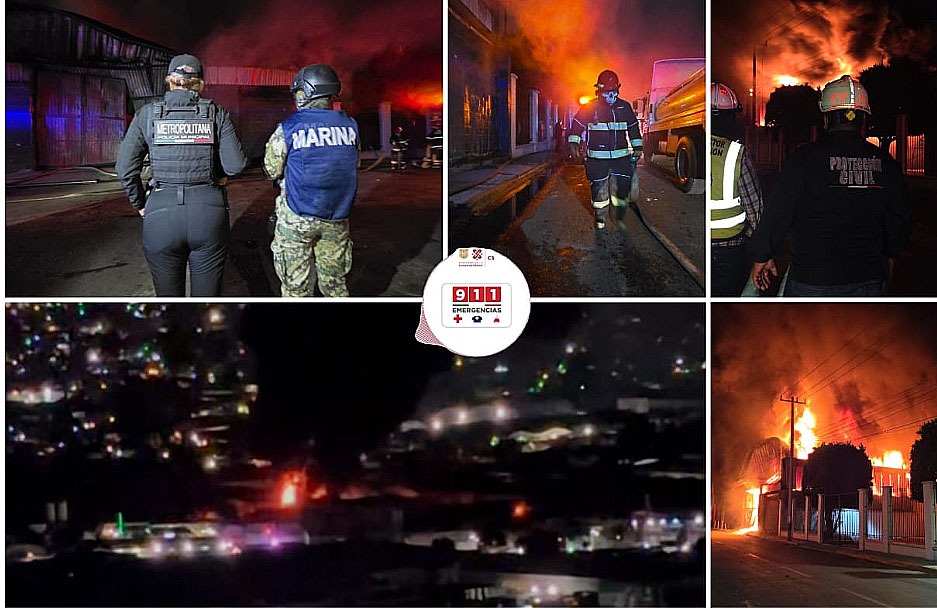 Más de 300 elementos de bomberos, policía municipal, estatal y Marina fueron desplegados en avenida Hierro en la zona industrial de Cuauhtémoc Xalostoc, donde se registra el incendio en una fábrica de pigmentos y pegamentos .