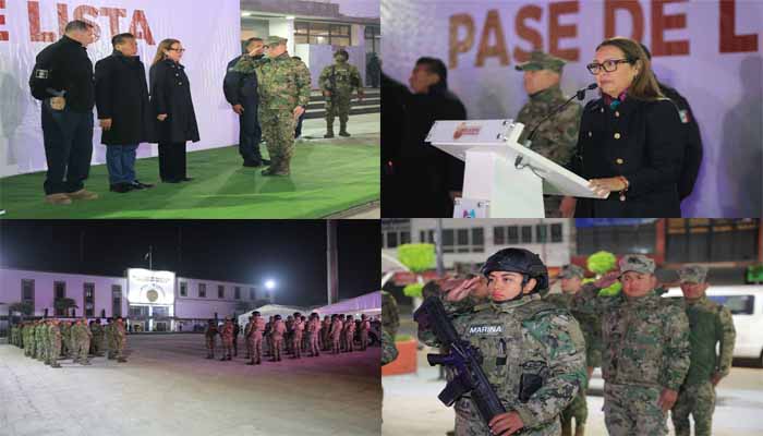 Al realizar el Pase de lista y revista a 109 elementos de Fuerza de Tarea Marina, la alcaldesa Azucena Cisneros Coss les solicitó reforzar la estrategia de seguridad con proximidad social en las comunidades de Ecatepec, junto a la policía municipal para consolidar una tendencia a la baja de delitos de alto impacto y garantizar tranquilidad a las familias.