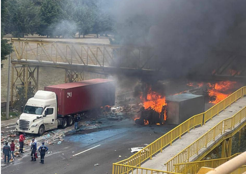 Un tráiler volcó y se salió del camino en la carretera libre México-Toluca, provocando caos vial que ha paralizado la zona.