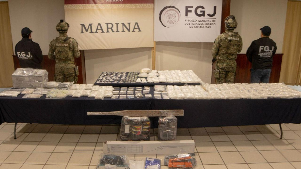 También se decomisaron 600 dosis de metanfetamina, puntualizaron autoridades de la Fiscalía General de Justicia de Tamaulipas, las que destacaron la participación de personal de la Secretaría de Marina Armada de México en los cateos, ordenados por autoridades del Poder Judicial.