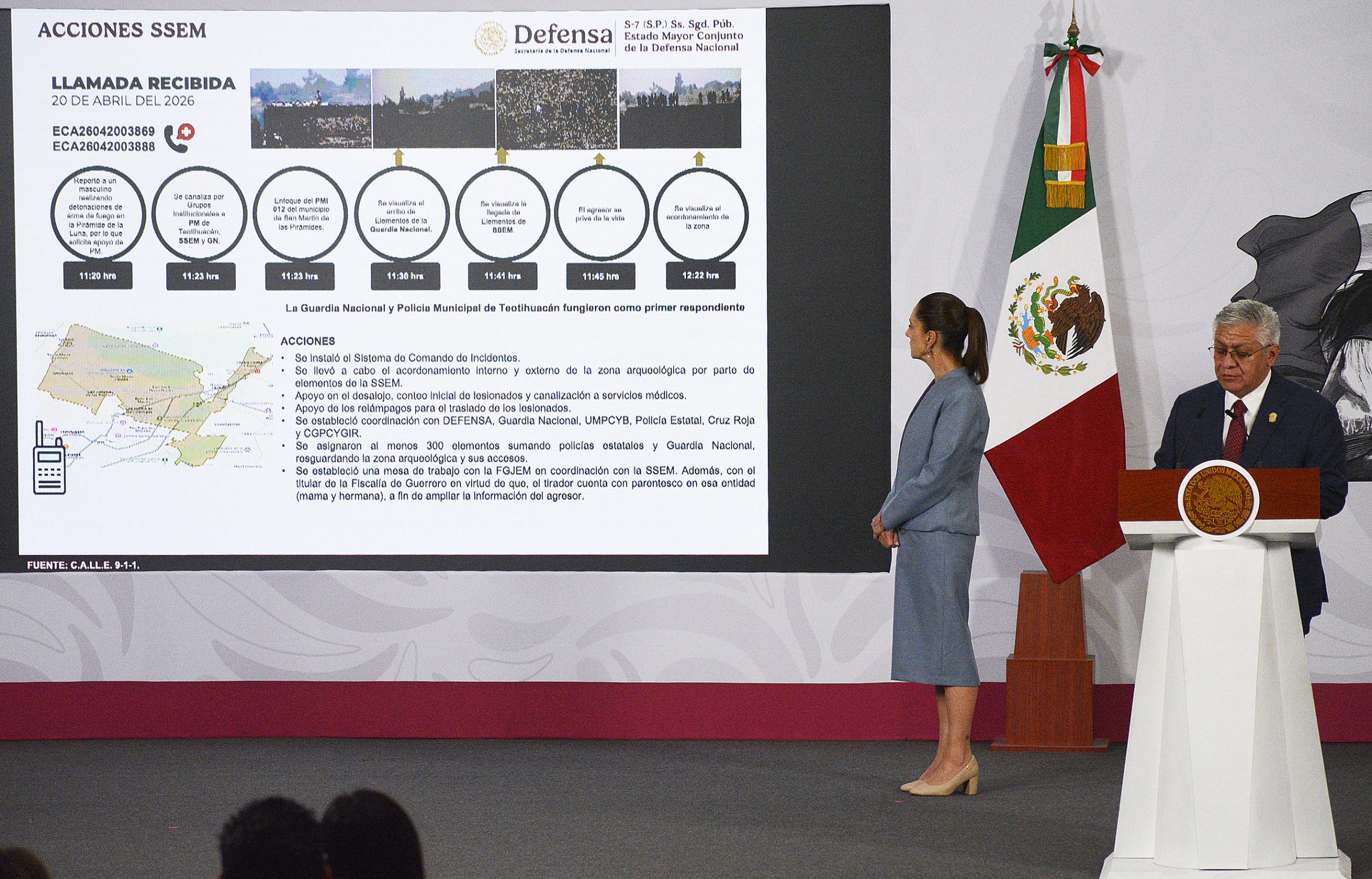 Cristóbal Castañeda Camarillo, titular de la Secretaría de Seguridad del Estado de México, presentó en la Mañanera con la presidenta Claudia Sheinbaum, la cronología de lo sucedido en Teotihuacán, tras la balacera protagonizada por Julio César «N»: