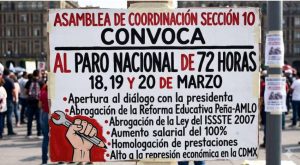 La Coordinadora Nacional de Trabajadores de la Educación (CNTE) volvió a movilizarse en calles de la Ciudad de México para exigir diálogo con el gobierno federal, al que acusa de no atender sus demandas. Como lo advirtió el gremio, este miércoles 18 de marzo inicia un paro de 72 horas. El magisterio informó que instalará un plantón en el zócalo capitalino y realizará una marcha desde el Ángel de la Independencia.