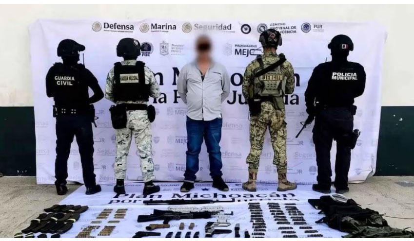 El arresto se llevó a cabo a las 12:30 en la calle Aquiles Serdán, entre Coalcomán y Vicente Carrillo Puente, en la colonia Los Mangos, y fue ejecutado por personal militar. De acuerdo con la información de medios locales, el detenido portaba dos fusiles de asalto, cuatro pistolas calibre 9 milímetros, diecinueve cargadores para arma larga, nueve para arma corta y 470 cartuchos útiles.