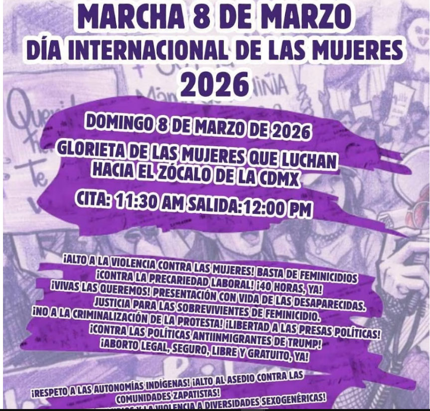 Las activistas convocantes de la Coordinación del 8 de marzo adelantaron algunos datos clave sobre la concentración que se espera sea multitudinaria como en otros años, por lo que compartieron el punto de salida, hora y actividad a realizar en el Zócalo:
