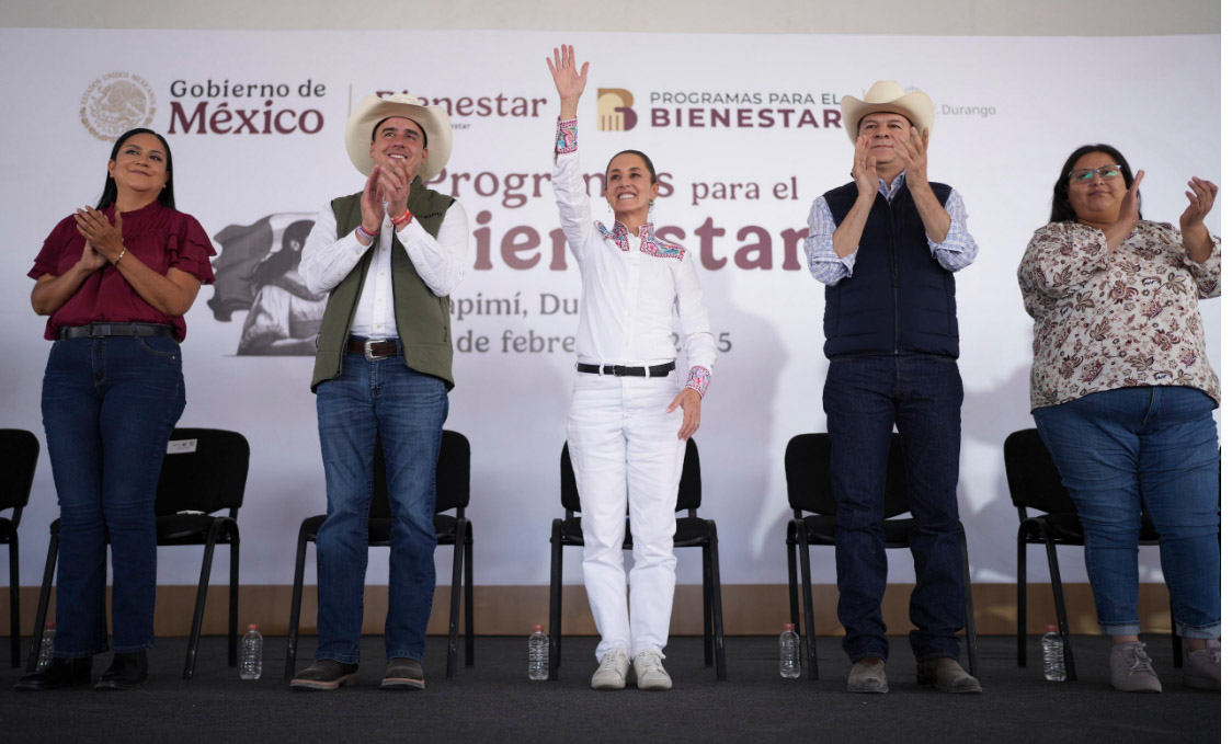 La presidenta de México se encuentra hoy en Mapimí, Durango, de gira ante una multitud que le esperaba, en dicho evento se entregaron apoyos del Bienestar.