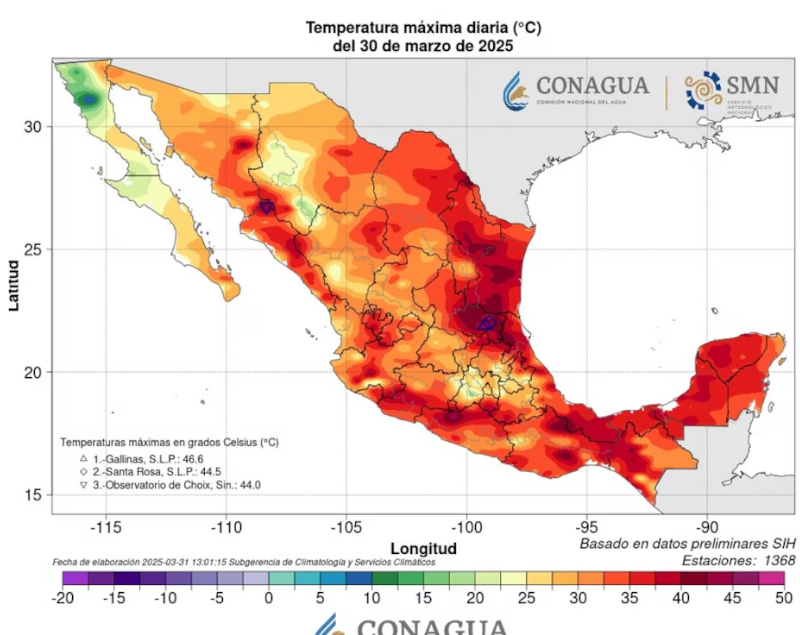 Debido a las altas temperaturas presentes en gran parte del territorio nacional, se han registrado 400 casos de daños a la salud en 27 entidades federativas del país, de acuerdo con el Informe Semanal de Daños a la Salud por Temperaturas Extremas de la Secretaría de Salud del Gobierno de México. Los estados de Tabasco y Jalisco, acumulan en conjunto el 31.3% del total de los casos. El golpe de calor es la afección más frecuente notificada con el 59.0% del total de casos.
