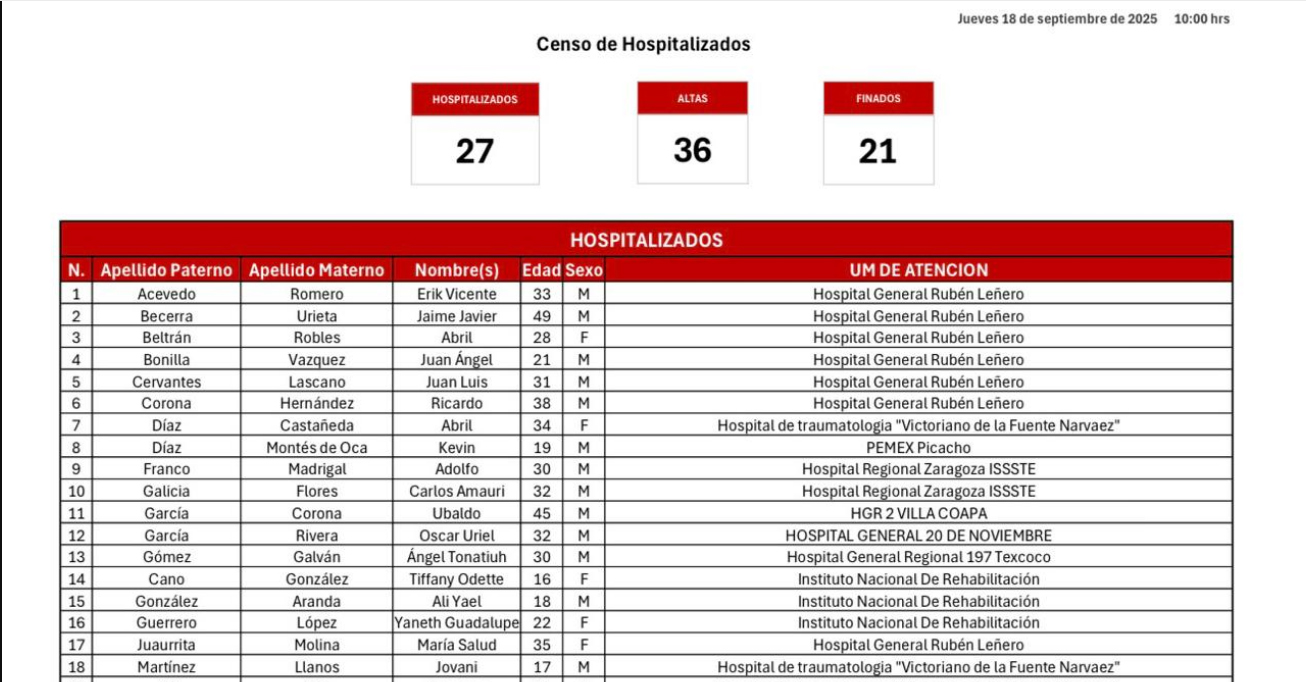 Suman ya 21 muertos por la explosión de una pipa de gas en el Puente de la Concordia, Iztapalapa, Ciudad de México (CdMx), el pasado 10 de diciembre del 2025, de acuerdo con la lista actualizada de la Secretaría de Salud capitalina al corte de las 10:00 horas de este jueves 18 de septiembre del 2025. Hasta ayer, la cifra de fallecidos cerró en 20, pero en la actualización de hoy jueves, se sumó una persona más a la lista de víctimas mortales por la tragedia.