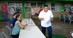 Para emitir sus votos, le fueron entregadas 10 boletas; tardó en el proceso, alrededor de 12 minutos. En total, su presencia en la casilla, duró aproximadamente 21 minutos.